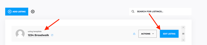 You'll notice the 'using template' title on top of the listing's name, then click on the 'Edit Listing' button: