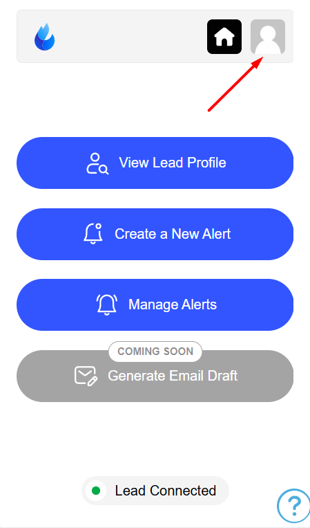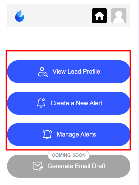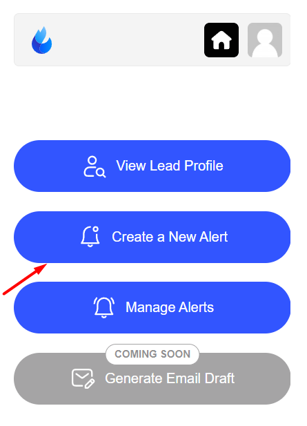The core actions you expect (viewing lead profiles, managing alerts, creating new alerts, etc.) are right up front and simple to navigate.