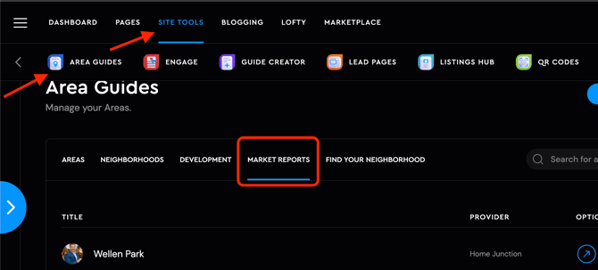 To access Market Reports, navigate to Site Tools → Area Guides, then click on Market Report, as shown below: