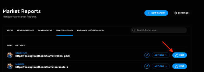 Alternatively, you can click the Edit button next to the Market Report to quickly make personalized edits for each area, as shown below: