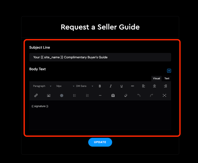 Your Lead Forms User Notifications can be edited directly within your Lead Manager settings area.