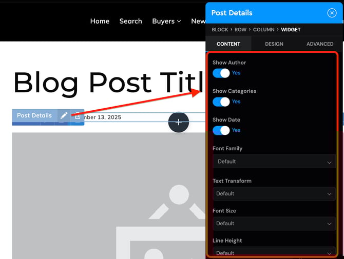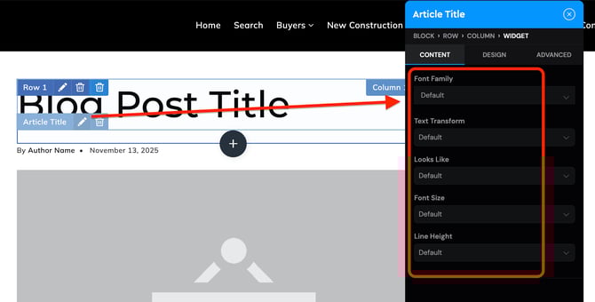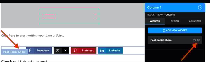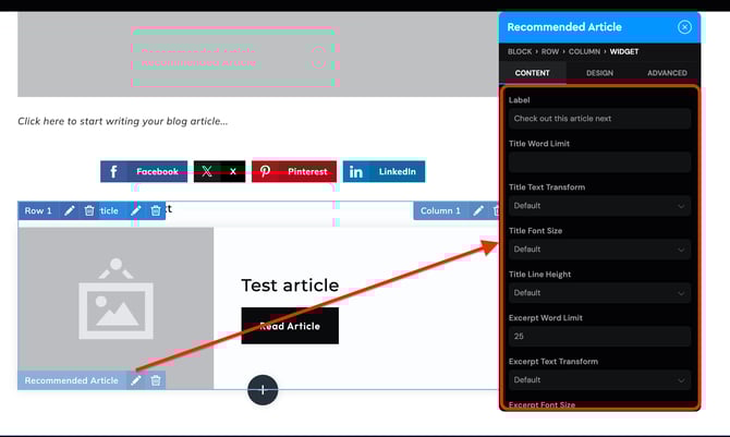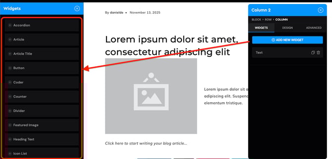 Any design template you create here will automatically apply to every new blog article you create. This template also allows you to adjust, add, and remove widgets specifically tailored for blogs: