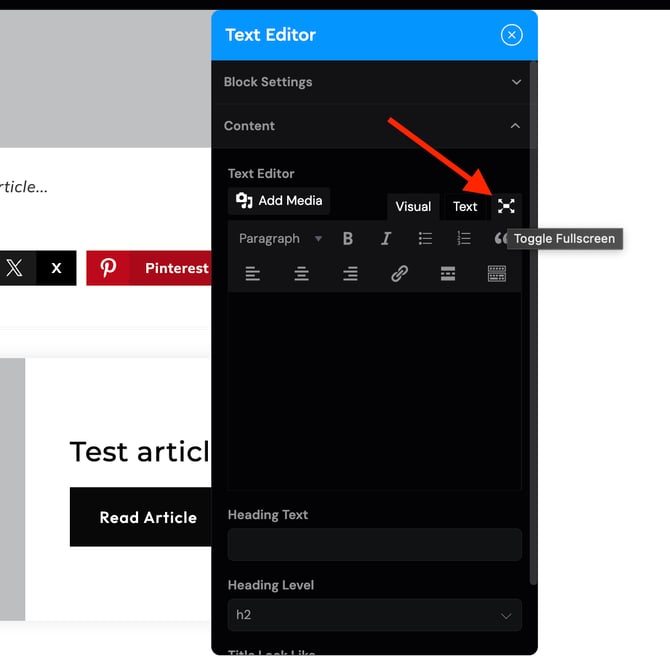 You will also notice a more prominent full-screen option, quick access to the block’s spacing settings, and an easy way to edit the heading’s text, style, and appearance: