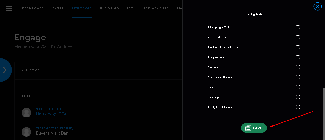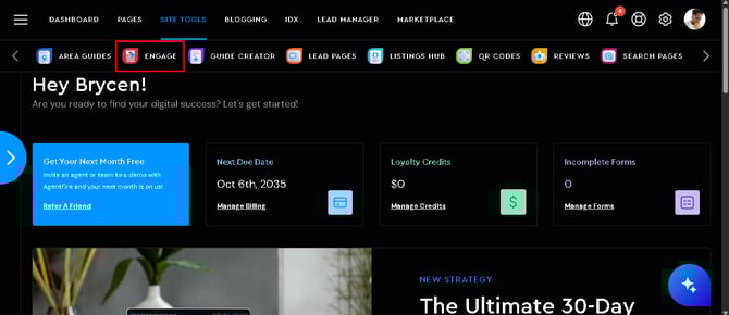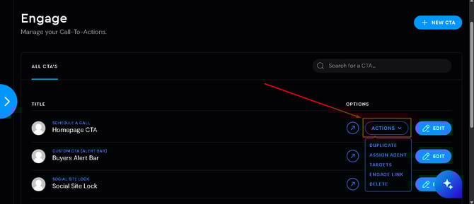 You can add an Engage CTA to a page, a market report, a featured community, blog posts or any area on your site.