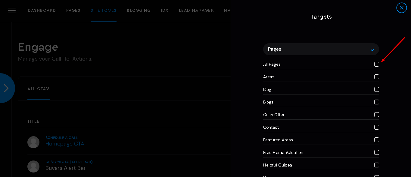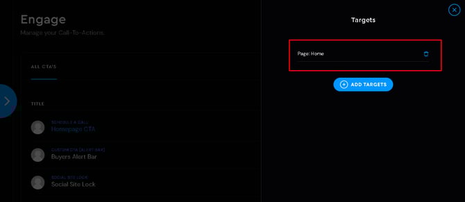 Browse the different targets you can choose and select the page you would like to add the engage pop-up to.
