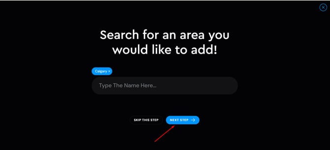 Select the area you want to add from the options, and click Next Step.