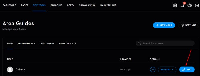 Access the "Site Tools" section, and navigate to the "Area Guides" section.