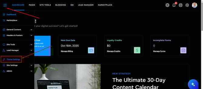 Access the "Advanced Menu" section and navigate to the "Theme Settings" section.